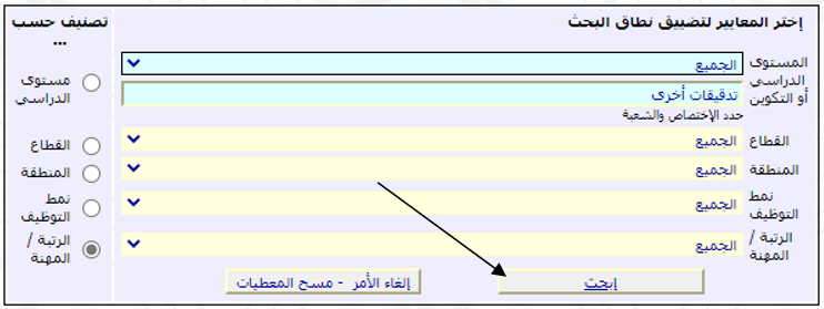 تظهر لك صفحة بها حقل البحث تترك كل شيء على الافتراضي وتنقر مباشرتا على "بحث"
