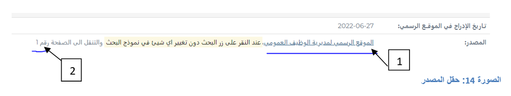 الدخول الى الموقع الرسمي من خلال النقر على "الموقع الرسمي لمديرية الوظيف العمومي" كما هو موضح في الصورة 14 العنصر (1)