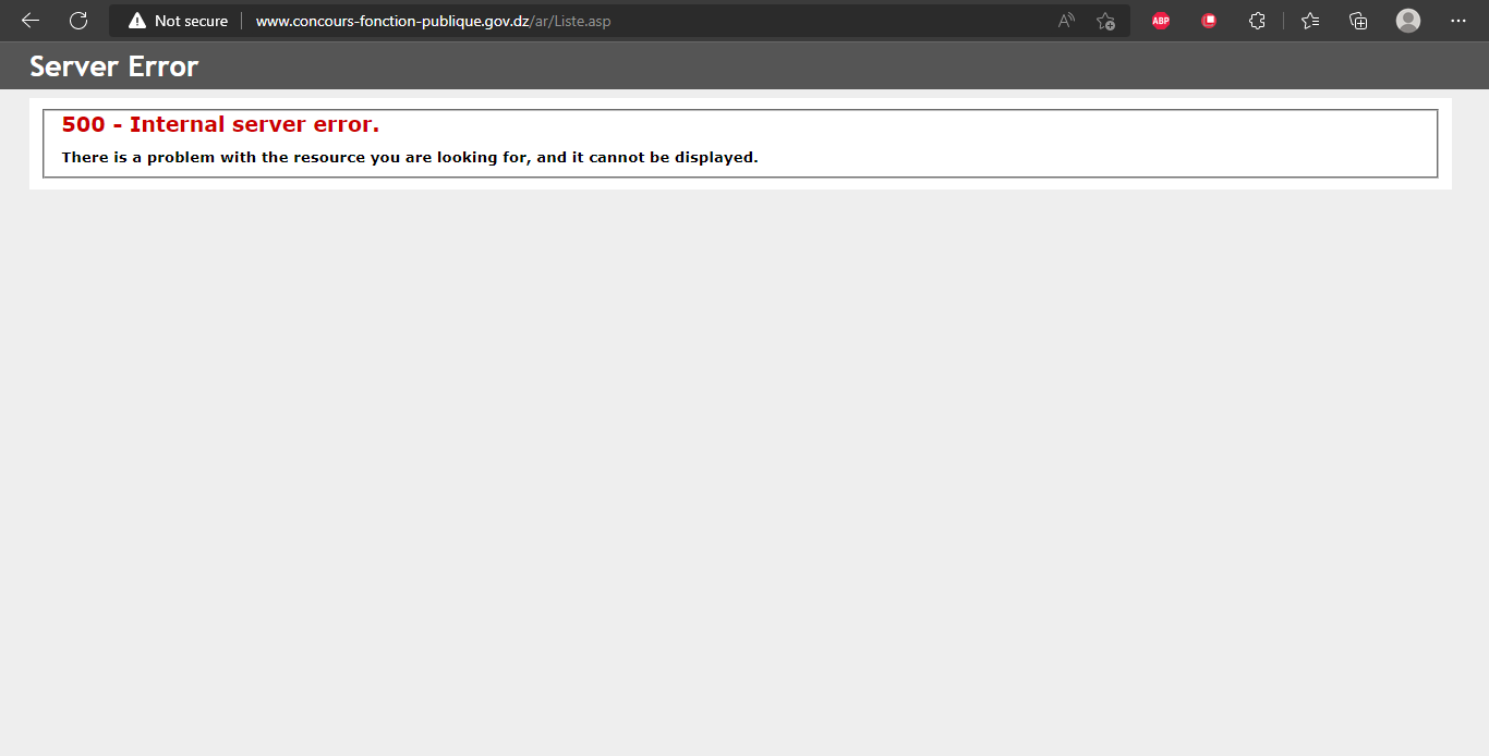 خطأ رقم 500 في الموقع الرسمي للمديرية العامة للوظيفة العمومية