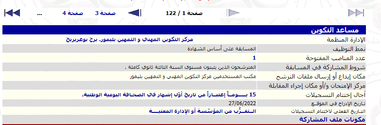 في مثالنا كانت المسابقة المنشودة هي اول مسابقة معروضة في الصفحة رقم 1 التي أخبرنا بها موقع dzmosabakat.com كما توضح الصورة